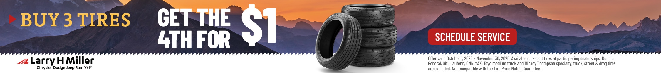 Taking sufficient care of your Chrysler|Jeep|Dodge|RAM tires can exceptionally determine the health of your vehicle. Tires can erode over a variable period of time and if they're not checked out accurately and routinely then they can make your daily drive dangerous. When you browse for new Chrysler|Jeep|Dodge|RAM tires, you have an assortment of options. The service consultants at Larry H. Miller Chrysler Dodge Jeep Ram 104th will help to simplify this process and ensure you are shown suggested tires for your vehicle. Regularly, you will find significant service specials on tires to help you save on what can each now and then be a expensive purchase. These are available to shop online. We have every sizeable tire brand available so you can have confidence you are getting the best deal. Our technicians here at will make sure your tire service is done quickly and correctly. If you'd like to schedule an appointment to have your tires inspected or replaced, you can do that online.