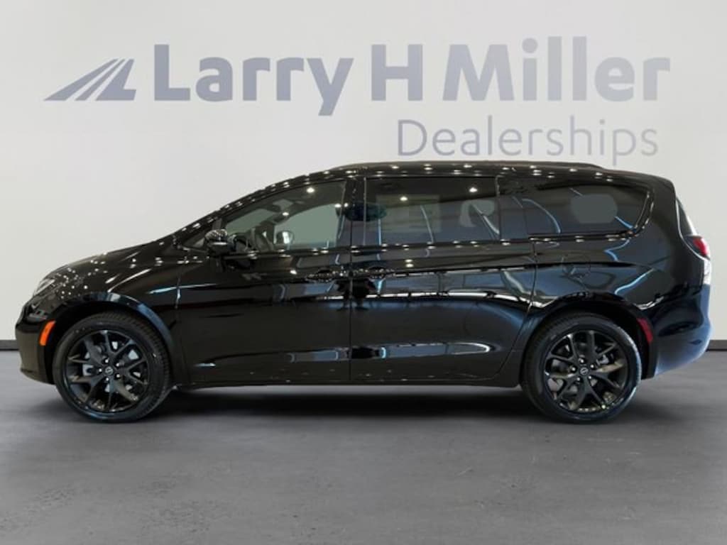 Larry H. MIller Chrysler Dodge Ram Fiat offers this 2026 Diamond Black Crystal Pearlcoat Chrysler Pacifica Select AWD. It is well equipped and includes these standard and optional features and benefits: Quick Order Package 27L, S Appearance Package (Anodized Ink Badging, Black Day Light Opening Moldings, Black Stow 'N Place Roof Rack, Caprice Leatherette with S Logo, Piano Black Interior Accents, Premium Fascia Upper/Lower Grille with Black Surround, Premium Rear Fascia Black, S Badge, and Wheels: 20 x 7.5 S-Model Aluminum Design 1), Safety Sphere (360 Surround View Camera System and ParkSense Front/Rear Park Assist with Stop), 10.1 Touchscreen Display, 18 x 7.5 Painted Aluminum Wheels, 3.73 Axle Ratio, 3rd row seats: split-bench, 4-Wheel Disc Brakes, 4G LTE Wi-Fi Hot Spot, 6 Speakers, ABS brakes, Air Conditioning, Alloy wheels, AM/FM radio: SiriusXM, Apple CarPlay, Apple CarPlay/Android Auto, Auto-dimming Rear-View mirror, Automatic temperature control, AWD Suspension, Black Seats, Brake assist, Bumpers: body-color, Caprice Leatherette Bucket Seats, Compass, Connectivity - US/Canada, Delay-off headlights, Disassociated Touchscreen Display, Driver door bin, Driver vanity mirror, Driver's Seat Mounted Armrest, Dual front impact airbags, Dual front side impact airbags, Electronic Stability Control, Emergency communication system: Chrysler Connect, For Details, Visit DriveUconnect.com, Four wheel independent suspension, Front anti-roll bar, Front Bucket Seats, Front dual zone A/C, Front fog lights, Front reading lights, Fully automatic headlights, Garage door transmitter, Google Android Auto, GPS Antenna Input, Heated door mirrors, Heated front seats, Heated steering wheel, Illuminated entry, Integrated Active Noise Cancellation, Integrated Center Stack Radio, Knee airbag, Low tire pressure warning, Memory seat, MyFlexCare Service Plan, Occupant sensing airbag, Outside temperature display, Overhead airbag, Overhead console, Panic alarm, ParkView Rear Back-Up Camera, Passenger door bin, Passenger seat mounted armrest, Passenger vanity mirror, Power door mirrors, Power driver seat, Power Liftgate, Power steering, Power windows, Radio data system, Radio: Uconnect 5 with 10.1 Display, Rain sensing wipers, Rear air conditioning, Rear reading lights, Rear window defroster, Rear window wiper, Reclining 3rd row seat, Remote keyless entry, Security system, Speed control, Split folding rear seat, Spoiler, Steering wheel mounted audio controls, Tachometer, Telescoping steering wheel, Tilt steering wheel, Traction control, Trip computer, Turn signal indicator mirrors, USB Host Flip, Variably intermittent wipers, and VoltmeteR. Price includes: $3500 - 2026 National Retail Bonus Cash . Exp. 04/30/2026