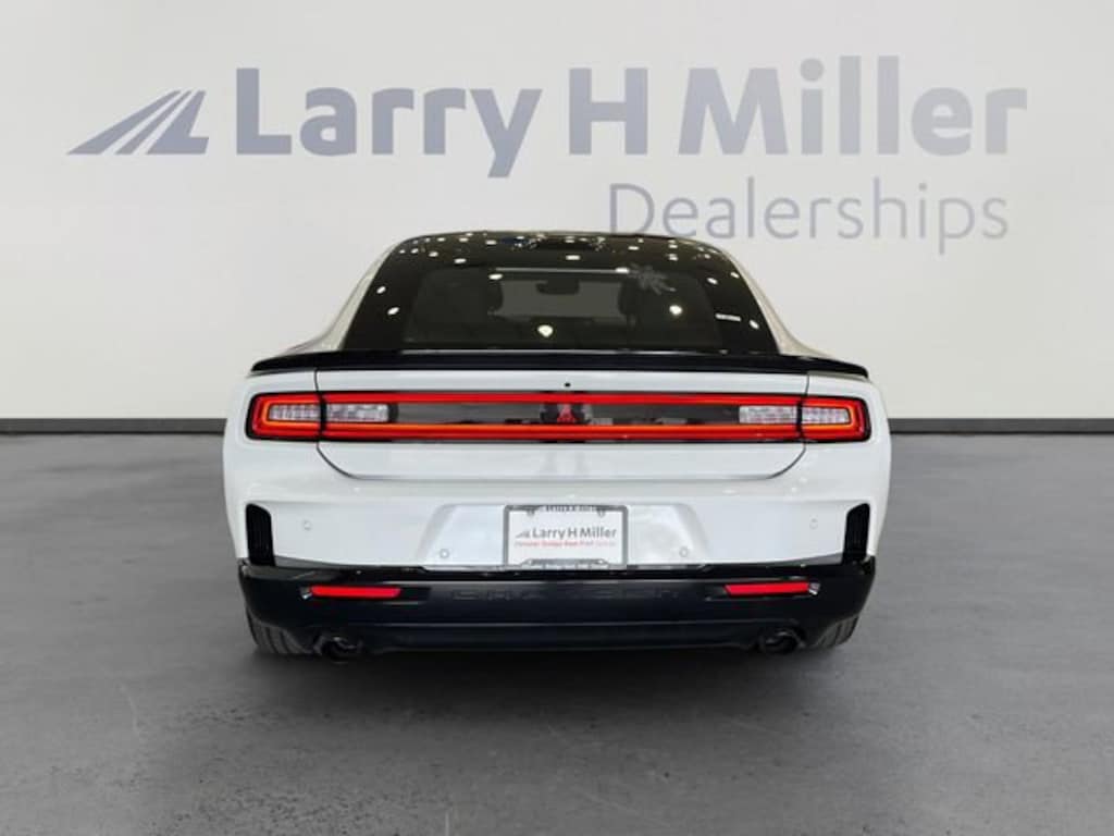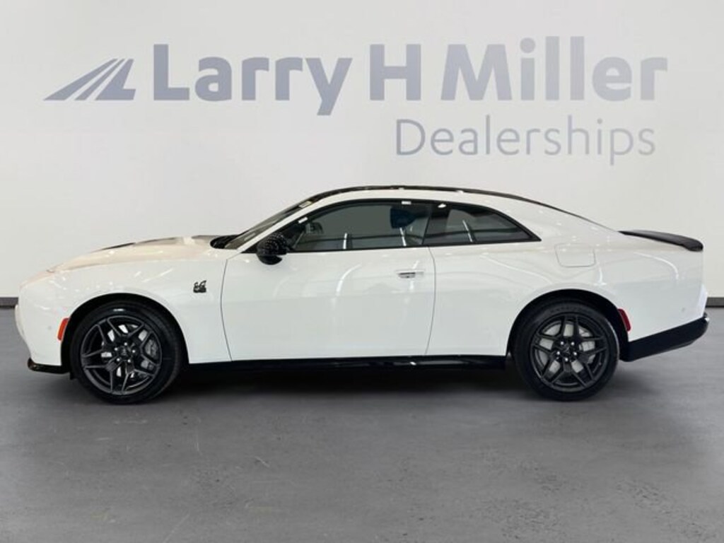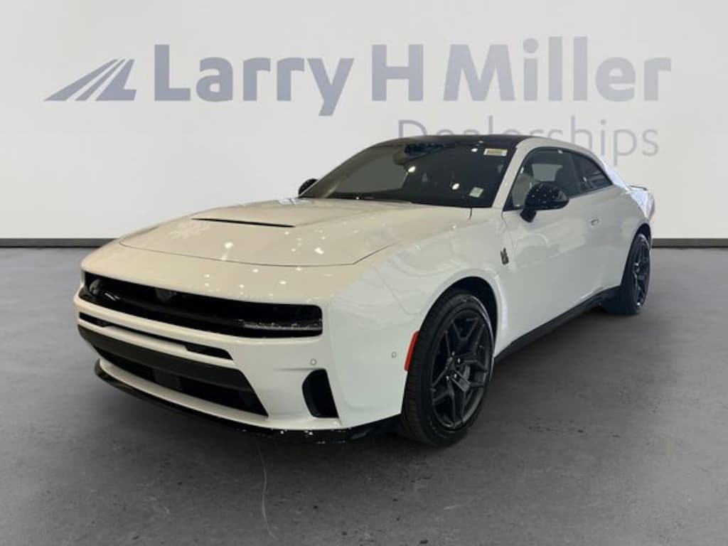 Larry H. MIller Chrysler Dodge Ram Fiat offers this 2026 Bright White Clearcoat Dodge Charger R/T Scat Pack AWD. It is well equipped and includes these standard and optional features and benefits: Blacktop Package (Dark Exterior Badging, Dual Rear Exhaust with Black Tips, and Wheels: 20 x 10 Dark Finish Aluminum), Quick Order Package 22P Scat Pack, Two Tone Paint Group, AWD, Black Cloth, 10 Speakers, 2-Way Manual Adjust Front Head Restraints, 2-Way Power Driver Lumbar Adjust, 4-Wheel Disc Brakes, 4G LTE Wi-Fi Hot Spot, 8-Way Power Driver Seat Adjust, ABS brakes, Active Noise Control System, Air Conditioning, Alloy wheels, AM/FM radio: SiriusXM w/360L, Apple CarPlay/Android Auto, Auto-dimming Rear-View mirror, Automatic temperature control, Black Seats, Brake assist, Bumpers: body-color, Compass, Connectivity - US/Canada, Delay-off headlights, Disassociated Touchscreen Display, Driver door bin, Driver vanity mirror, Dual front impact airbags, Dual front side impact airbags, Electronic Stability Control, Emergency communication system: Dodge Connect, Four wheel independent suspension, Front anti-roll bar, Front Bucket Seats, Front Center Armrest, Front dual zone A/C, Front License Plate Bracket, Front reading lights, Fully automatic headlights, Garage door transmitter, Heated door mirrors, Heated Exterior Mirrors, Heated Front Seats, Heated front seats, Heated steering wheel, Illuminated entry, Integrated Center Stack Radio, Knee airbag, Leather Shift Knob, Leatherette/Cloth Performance Seats, Low Back Bucket Seats, Low tire pressure warning, Manufacturer's Statement of Origin, MyFlexCare Service Plan, Occupant sensing airbag, Outside temperature display, Overhead airbag, Overhead console, Panic alarm, ParkView Rear Back-Up Camera, Passenger door bin, Passenger vanity mirror, Power Adjust Mirrors, Power door mirrors, Power driver seat, Power steering, Power windows, Radio data system, Radio: Uconnect 5 with 12.3 Display, Rear anti-roll bar, Rear reading lights, Rear seat center armrest, Rear window defroster, Remote keyless entry, Security system, Speed control, Split folding rear seat, Spoiler, Sport steering wheel, Steering wheel mounted audio controls, Tachometer, Telescoping steering wheel, Tilt steering wheel, Traction control, Trip computer, Variably intermittent wipers, Wheels: 20 x 10 Aluminum, Wireless Apple CarPlay, and Wireless Google Android Auto. AWD, Black Cloth.
