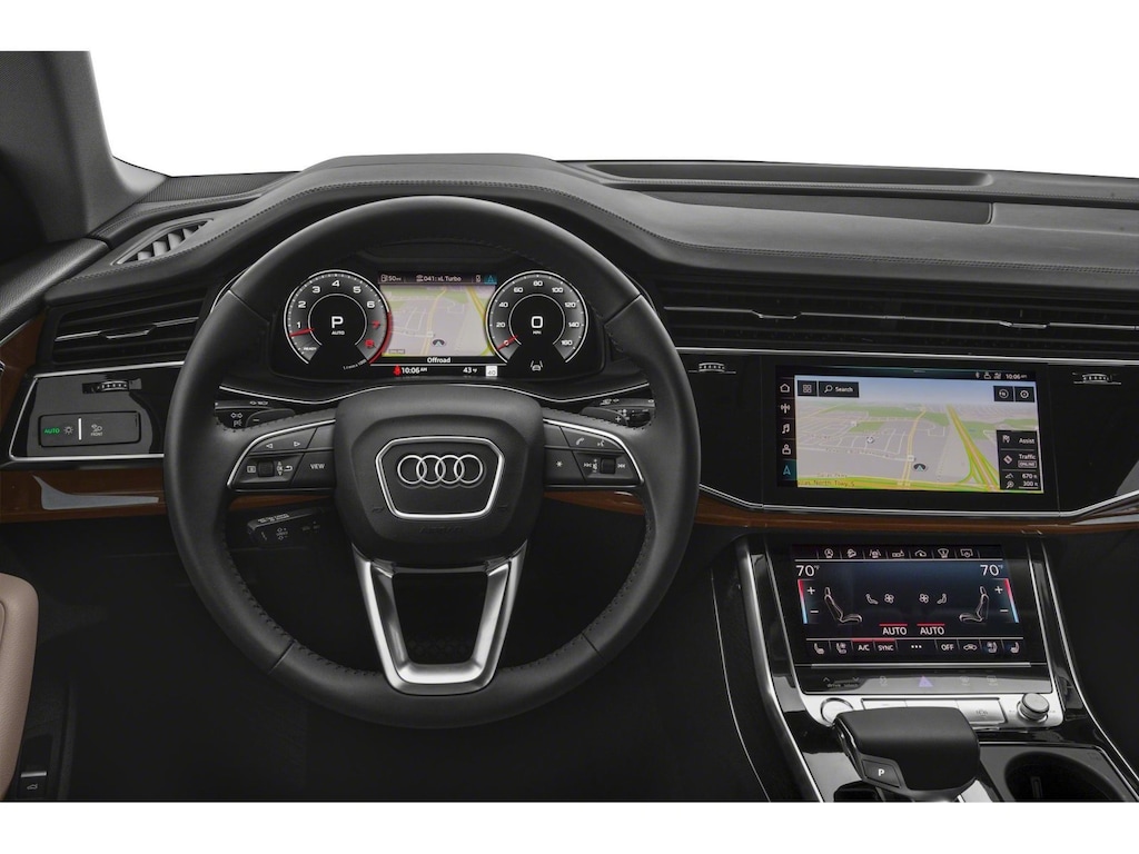 10 Speakers, 21 5-Segment-Spoke-Design Wheels, 4-Wheel Disc Brakes, ABS brakes, Adaptive suspension, Air Conditioning, Alloy wheels, AM/FM radio: SiriusXM, Audi smartphone interface (Apple CarPlay/Android Auto), Auto High-beam Headlights, Auto-dimming door mirrors, Auto-dimming Rear-View mirror, Automatic temperature control, Axle Ratio: TBD, Brake assist, Bumpers: body-color, Compass, Delay-off headlights, Driver door bin, Driver vanity mirror, Dual front impact airbags, Dual front side impact airbags, Electronic Stability Control, Emergency communication system: Audi connect CARE, PRIME & PLUS, Exterior Parking Camera Rear, Four wheel independent suspension, Front anti-roll bar, Front Bucket Seats, Front Center Armrest, Front dual zone A/C, Front fog lights, Front reading lights, Fully automatic headlights, Garage door transmitter: HomeLink, Genuine wood door panel insert, Heated door mirrors, Heated Front Bucket Seats, Heated front seats, Illuminated entry, Leather Seating Surfaces, Leather Shift Knob, Leather steering wheel, Low tire pressure warning, Memory seat, Navigation system: Audi MMI Navigation plus with Touch Response, Occupant sensing airbag, Outside temperature display, Overhead airbag, Overhead console, Panic alarm, Passenger door bin, Passenger vanity mirror, Power door mirrors, Power driver seat, Power Liftgate, Power moonroof: Panoramic, Power passenger seat, Power steering, Power windows, Radio data system, Radio: MMI Nav Plus w/MMI Touch Response, Rain sensing wipers, Rear air conditioning, Rear anti-roll bar, Rear fog lights, Rear reading lights, Rear seat center armrest, Rear side impact airbag, Rear window defroster, Rear window wiper, Remote keyless entry, Roof rack: rails only, Security system, Speed control, Speed-sensing steering, Split folding rear seat, Spoiler, Steering wheel memory, Steering wheel mounted audio controls, Tachometer, Telescoping steering wheel, Tilt steering wheel, Traction control, Trip computer, Turn signal indicator mirrors, and Variably intermittent wipers.