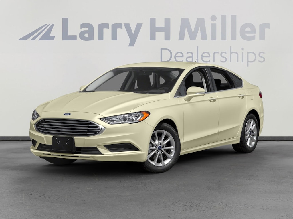 Larry H. MIller Chrysler Dodge Ram Fiat offers this 2017 White Gold Ford Fusion SE AWD. It is well equipped and includes these standard and optional features and benefits: Equipment Group 202A, Fusion SE Luxury Package (Auto-Dimming Rear-View Mirror, Heated Leather Front Bucket Seats, Intelligent Access w/Remote Start System, Leather-Wrapped Steering Wheel, LED Fog Lamps, LED Headlamps, Upgraded Sideview Mirrors w/Heat, and Warm Interior Accents), Fusion SE Technology Package (Dual-Zone Electronic Automatic Temperature Control and SYNC 3 Communications & Entertainment System), 6-Speed Automatic, AWD, 4-Wheel Disc Brakes, 6 Speakers, ABS brakes, Air Conditioning, All-Weather Front & Rear Floor Mats, Alloy wheels, AM/FM radio: SiriusXM, Brake assist, Bumpers: body-color, CD player, Cloth/Vinyl Bolster Seats, Compass, Delay-off headlights, Driver door bin, Driver vanity mirror, Dual front impact airbags, Dual front side impact airbags, Electronic Stability Control, Emergency communication system: 911 Assist, Exterior Parking Camera Rear, Four wheel independent suspension, Front anti-roll bar, Front Bucket Seats, Front Center Armrest, Front reading lights, Fully automatic headlights, Illuminated entry, Knee airbag, Low tire pressure warning, Occupant sensing airbag, Outside temperature display, Overhead airbag, Overhead console, Panic alarm, Passenger door bin, Passenger vanity mirror, Power door mirrors, Power driver seat, Power passenger seat, Power steering, Power windows, Radio data system, Radio: AM/FM Stereo/MP3/Single-CD, Rear anti-roll bar, Rear reading lights, Rear seat center armrest, Rear window defroster, Remote keyless entry, Security system, SiriusXM Radio, Speed control, Speed-sensing steering, Speed-Sensitive Wipers, Split folding rear seat, Spoiler, Steering wheel mounted audio controls, SYNC Communications & Entertainment System, Tachometer, Telescoping steering wheel, Tilt steering wheel, Traction control, Trip computer, Variably intermittent wipers, Wheels: 18 Machine-Faced Alum. W/Painted Pockets, and Wheels: 18 Prem Painted Dark Stainless.