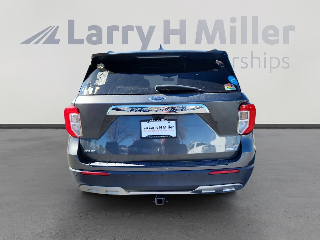 Larry H. MIller Chrysler Dodge Ram Fiat offers this 2020 Magnetic Ford Explorer XLT 4WD. It is well equipped and includes these standard and optional features and benefits: Comfort Package (1st & 2nd Row Heated Seats and Heated Steering Wheel), Equipment Group 202A (ActiveX Captain's Chairs, LED Fog Lamps, and Remote Start System), 4WD, 3.58 Non-Limited-Slip Rear Axle Ratio, 3rd row seats: bench, 4-Wheel Disc Brakes, 6 Speakers, ABS brakes, Air Conditioning, Alloy wheels, AM/FM radio: SiriusXM, AM/FM Stereo, Auto High-beam Headlights, Automatic temperature control, Brake assist, Bumpers: body-color, Compass, Delay-off headlights, Driver door bin, Driver vanity mirror, Dual front impact airbags, Dual front side impact airbags, Electronic Stability Control, Emergency communication system: SYNC 3 911 Assist, Exterior Parking Camera Rear, FordPass Connect, Four wheel independent suspension, Front anti-roll bar, Front Bucket Seats, Front Center Armrest, Front dual zone A/C, Front reading lights, Fully automatic headlights, Heated door mirrors, Illuminated entry, Knee airbag, Leather steering wheel, Low tire pressure warning, Occupant sensing airbag, Outside temperature display, Overhead airbag, Overhead console, Panic alarm, Passenger door bin, Passenger vanity mirror, Power door mirrors, Power driver seat, Power Liftgate, Power passenger seat, Power steering, Power windows, Rear air conditioning, Rear anti-roll bar, Rear reading lights, Rear window defroster, Rear window wiper, Remote keyless entry, Roof rack: rails only, Security system, Speed control, Speed-sensing steering, Speed-Sensitive Wipers, Split folding rear seat, Spoiler, Steering wheel mounted audio controls, SYNC 3 Communications & Entertainment System, SYNC 3/Apple CarPlay/Android Auto, Tachometer, Telescoping steering wheel, Tilt steering wheel, Traction control, Trip computer, Unique Cloth Captain's Chairs, Variably intermittent wipers, and Wheels: 18 5-Spoke Sparkle Silver-Painted Alum.