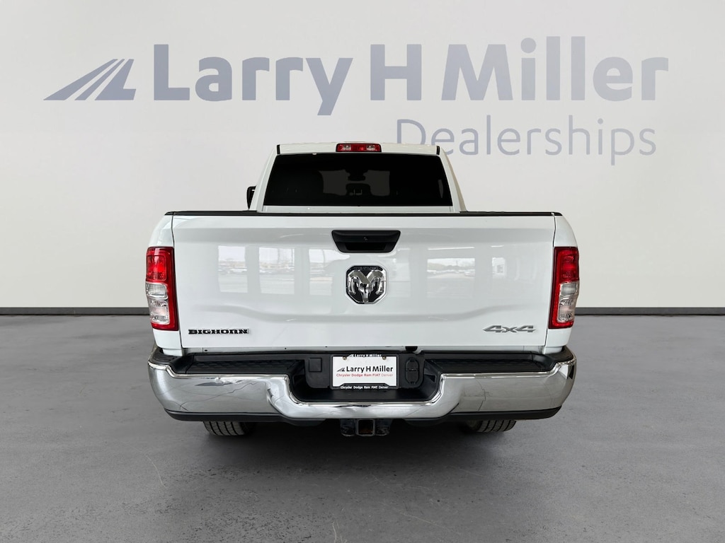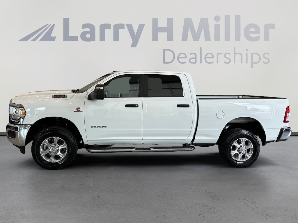 Larry H. MIller Chrysler Dodge Ram Fiat offers this 2024 Bright White Clearcoat Ram 2500 Big Horn 4WD. It is well equipped and includes these standard and optional features and benefits: Level 1 Equipment Group (2 Way Rear Headrest Seat, 2nd Row In Floor Storage Bins, 4 Way Front Headrests, 40/20/40 Split Bench Seat, 4G LTE Wi-Fi Hot Spot, 8.4 Touchscreen Display, Apple CarPlay, Auto Power-Folding Mirrors, Big Horn IP Badge, Black Exterior Mirrors, Bluetooth Handsfree Phone & Audio, Center Hub, Connectivity - US/Canada, Dual Glove Boxes, Exterior Mirrors Courtesy Lamps, Exterior Mirrors w/Heating Element, Exterior Mirrors w/Supplemental Signals, Foam Bottle Insert (Door Trim Panel), Footwell Courtesy Lamp, For Details, Visit DriveUconnect.com, For More Info, Call 800-643-2112, Forward & Reverse Utility Lights, Front Armrest w/Cupholders, Front Center Seat Cushion Storage, Front Fog Lamps, Front Seat Back Map Pockets, Global Telematics Box Module (TBM), Glove Box Lamp, Google Android Auto, GPS Antenna Input, Integrated Center Stack Radio, Integrated Voice Command w/Bluetooth, Leather Wrapped Steering Wheel, Locking Lower Glove Box, Manual Adjust 4-Way Front Passenger Seat, Mirror Running Lights, Power 2-Way Driver Lumbar Adjust, Power Adjust 8-Way Driver Seat, Power Adjust Mirrors, Power Adjustable Convex Aux Mirrors, Power Heated Fold Telescope Mirrors, Power Telescoping Mirrors, Rear 60/40 Folding Seat, Rear Dome w/On/Off Switch Lamp, Remote USB Port - Charge Only, Selectable Tire Fill Alert, SiriusXM Radio Service, SiriusXM Satellite Radio, Steering Wheel Mounted Audio Controls, Storage Tray, and Wheels: 18 x 8.0 Polished Aluminum), Quick Order Package 2HZ Big Horn, 3.73 Axle Ratio, 4-Wheel Disc Brakes, 6 Speakers, ABS brakes, Active Noise Control System, Air Conditioning, Brake assist, Bumpers: chrome, Center Stack Storage Drawer, Chrome Flat Cab-Length Side Steps, Cloth 40/20/40 Bench Seat, Compass, Delay-off headlights, Driver door bin, Dual front impact airbags, Dual front side impact airbags, Electronic Stability Control, Electronically Controlled Throttle, Emergency communication system: SiriusXM Guardian, Front anti-roll bar, Front Center Armrest w/Storage, Front License Plate Bracket, Front reading lights, Fully automatic headlights, Heated door mirrors, Illuminated entry, Low tire pressure warning, Manual Adjust 4-Way Driver Seat, Manufacturer's Statement of Origin, Occupant sensing airbag, Outside temperature display, Overhead airbag, Overhead console, Panic alarm, ParkView Rear Back-Up Camera, Passenger door bin, Passenger vanity mirror, Power door mirrors, Power steering, Power windows, Premium Cloth 40/20/40 Bench Seat (DISC), Radio data system, Radio: Uconnect 3 w/5 Display, Radio: Uconnect 5 W w/8.4 Display, Rear anti-roll bar, Rear Folding Seat, Rear seat center armrest, Rear step bumper, Remote keyless entry, Speed control, Tachometer, Tilt steering wheel, Tip Start, Tow Hooks, Traction control, Trip computer, Turn signal indicator mirrors, Variably intermittent wipers, Voltmeter, and Wheels: 18 x 8.0 Steel Chrome ClaD.