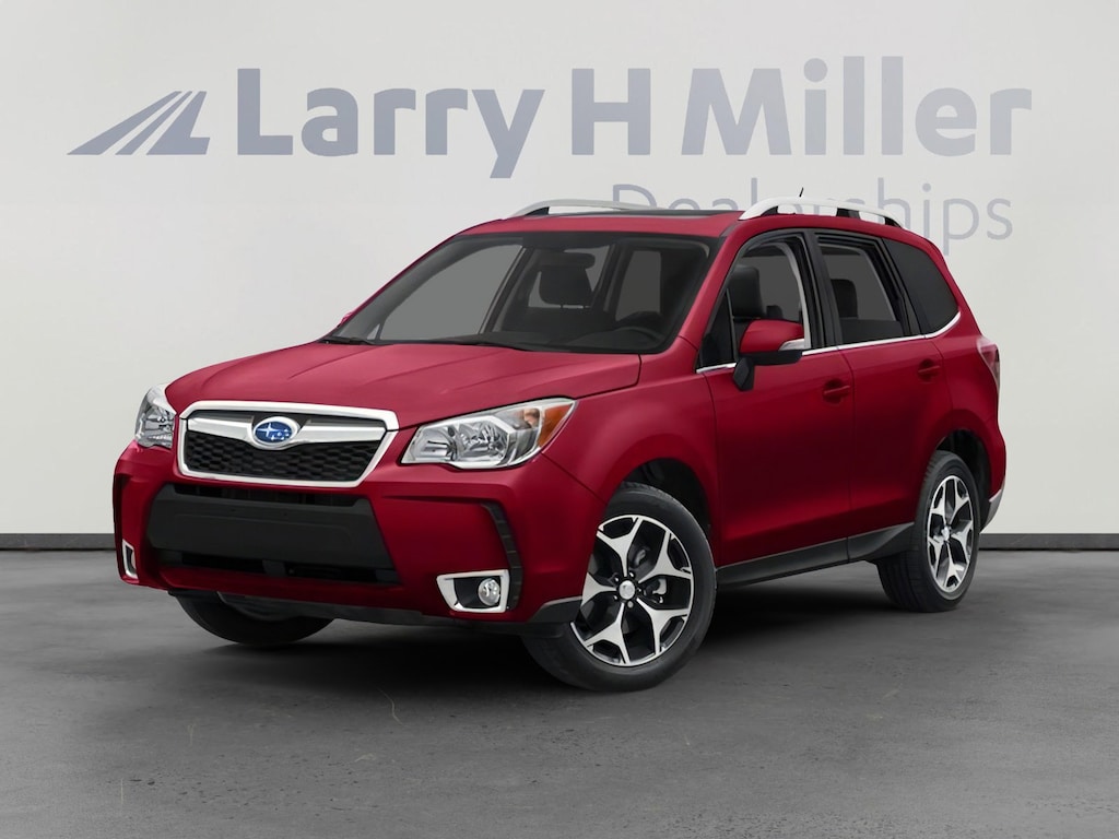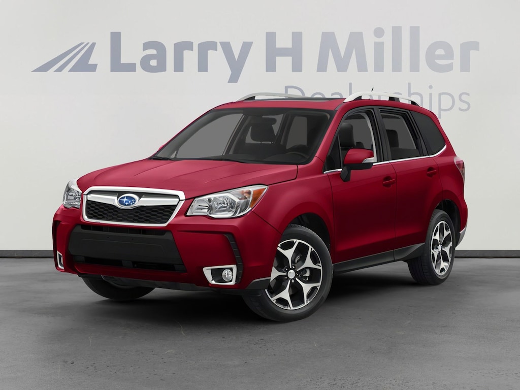 Larry H. MIller Chrysler Dodge Ram Fiat offers this 2014 Venetian Red Pearl Subaru Forester 2.0XT Touring AWD. It is well equipped and includes these standard and optional features and benefits: Keyless Access/Start & EyeSight System & HID (Adaptive Cruise Control, EyeSight Driver Assist System, High Intensity Discharge (HID) Low Beam, Keyless Access & Start, Lane Departure & Sway Warning, Pre-Collision Braking System, and Pre-Collision Throttle Management), Rugged Package #2 (Aero Cross Bar Set, Luggage Compartment Cover, Rear Bumper Cover, and Splash Guard Kit), 4-Wheel Disc Brakes, 4.11 Axle Ratio, 8 Speakers, ABS brakes, Air Conditioning, Alloy wheels, Alloy Wheels w/Lock Kit, AM/FM radio: SiriusXM, Auto-Dimming Mirror w/Compass & HomeLink, Automatic temperature control, Brake assist, Bumpers: body-color, CD player, Driver door bin, Driver vanity mirror, Driver's Side Mirror, Dual front impact airbags, Dual front side impact airbags, Electronic Stability Control, Ext. Auto Dimming Mirror w/Approach Lighting, Exterior Mirror Hardware Kit, Exterior Parking Camera Rear, Four wheel independent suspension, Front anti-roll bar, Front Bucket Seats, Front Center Armrest, Front dual zone A/C, Front fog lights, Front reading lights, Fully automatic headlights, harman/kardon® Speakers, Heated door mirrors, Heated Front Bucket Seats, Heated front seats, Illuminated entry, Knee airbag, Leather Shift Knob, Low tire pressure warning, Navigation System, Occupant sensing airbag, Outside temperature display, Overhead airbag, Overhead console, Panic alarm, Passenger door bin, Passenger vanity mirror, Passenger's Side Mirror, Perforated Leather-Trimmed Upholstery, Power door mirrors, Power driver seat, Power Liftgate, Power moonroof, Power steering, Power windows, Radio data system, Radio: AM/FM Stereo w/HD Radio & Single CD Player, Rear anti-roll bar, Rear seat center armrest, Rear window defroster, Rear window wiper, Remote keyless entry, Roof rack: rails only, Security system, Speed control, Split folding rear seat, Spoiler, Steering wheel mounted audio controls, Tachometer, Telescoping steering wheel, Tilt steering wheel, Traction control, Trip computer, Turn signal indicator mirrors, Variably intermittent wipers, and Wheels: 18 x 7.0J Aluminum Alloy.